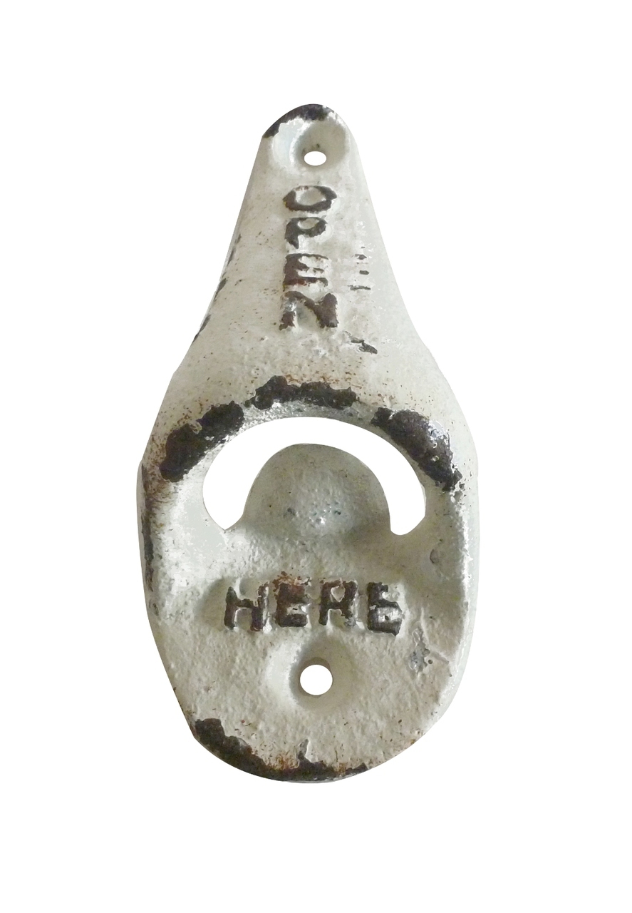 7. White Retro Look Open Here Bottle Opener Cast Iron Wall Mount Chipped Paint, $13.88. The distressed finish, cast iron style and simplicity of this bottle opener perfectly follow the farmhouse style trend. And what's better than a piece of decor that's not only stylish and trendy but also useful? For just under $14, this piece is a must-have for anyone interested in incorporating the farmhouse style trend into their home.